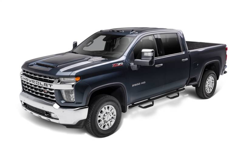Nerf Step - Cab Len (2 Stps)-19(NewBody)-25Silv/Sierra1500/20-25HD Dbl-GlossBlk Built with today's work truck in mind, N-FAB offers its patented hoop step design and innovative mounting system in a Cab Length configuration. Designed with classic N-FAB styling, Cab Length Nerf Steps are ideal for flat bed trucks, stake bed trucks, vehicles with campers, and even trucks with side exhaust forward of the rear wheels. Manufactured from .084 wall tubular steel, Cab Length Nerf Steps provide all of the strength and durability for which N-FAB is known. All Nerf Steps have a 5 year Finish and Lifetime Workmanship Warranty. Main Bar Is Built High And Tight To Hide Frame Provides Better Visual Aesthetics Provides Added Protection From Road Debris Welded Step Pads Will Not Crack Or Break Solid 1Pc Non Modular Design For Easy Installation