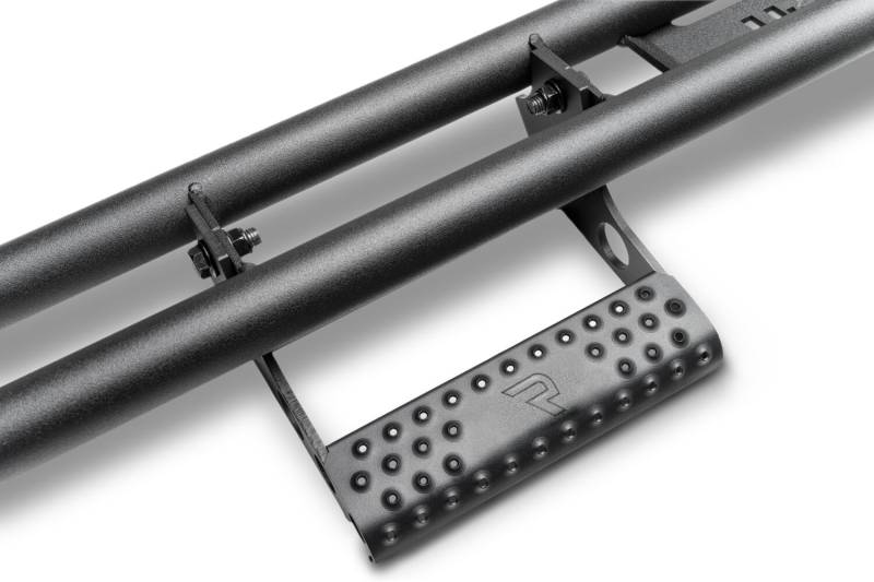 RKR Step Sys - Cab Len (2 Stp Mnts/2 Stps) - 05-23 Tacoma Access - TX Blk N-FAB RKR Rails Provide superior protection while enhancing the look of the vehicle. Constructed using 0.12 in. wall, 1.75 in. tubular steel, RKR Rails are treated inside and out for extra corrosion resistance so you know they are built to last. Finished with a durable textured black powder coat, N-FAB RKR Rails look as good as they perform both on and off-road. Making a great product even better, N-FAB offers optional Detachable Steps that are compatible with all N-FAB RKR Rails and Factory Toyota FJ Rock Rails. These steps offer convenient vehicle access for daily use and can be removed to allow for maximum group clearance when off-road. 2 Steps Mount Per Side Dual 1.75 in. Rails w/XD Brackets 465 lb/ Load Rating Fully Welded 1-Piece Design 5 Year Finish Warranty