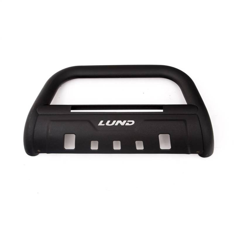 Protects your front end from flying debris with 3.5 inches of oval steel tubing. These bull bars also boost your visibility with an integrated 20 in. LED light bar. The included heavy duty light bar illuminates your night driving with a bright flood beam pattern and is easily wired into your factory light wiring, or a wiring harness can be purchased separately. Available in black textured powder coat or polished T304 stainless steel finish. Our popular LUND bull bars may now be ordered with a wire harness kit. The wire harness kit is also sold separately for lighting and accessories up to 30 Amps. LUND's bull bars with LED light bar and wiring kit is the total package to see and be seen, providing complete front end style, lighting and protection.