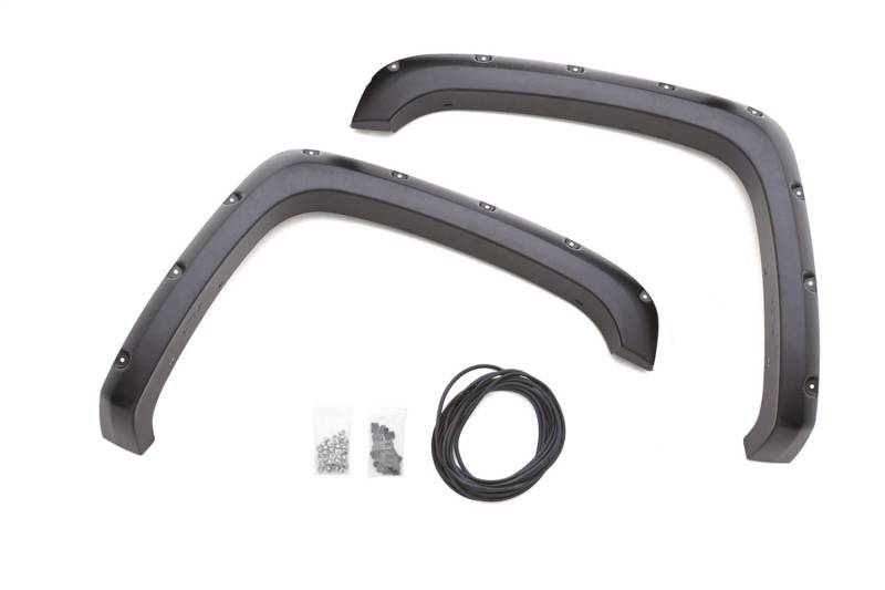 Rivet Style Fender Flare Set; Textured Black Finish; 2 pc.; Front Flare Height 5 in.; Front Flare Tire Coverage 2 in.;