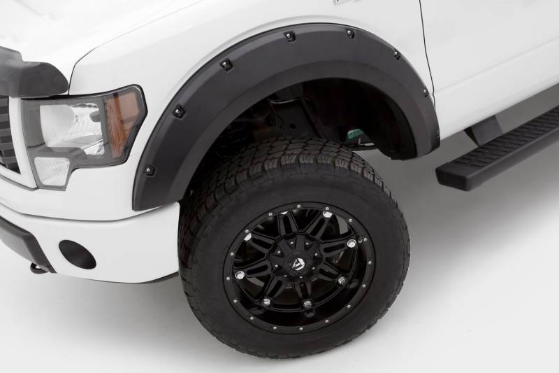 Rivet Style Fender Flare Set; Smooth Black Finish; 2 pc.; Front Flare Height 6.13 in.; Front Flare Tire Coverage 1.5 in.;