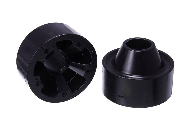 Coil Spring Spacer Lift Set A true performance application component for cars, trucks, hot rods and racing and competition vehicles - yet designed to be also used for street vehicles. Soft-running enough to absorb vibrations for street use yet rugged for racing use. When required- a torque resistant safety interlock design is used that is comparable in strength to those too hard-running metal mounts. Replaces the original, short lived and typically too-soft rubber mounts and outdates those hard-running metal motor mounts. The popular early style mounts for General Motors vehicles are available in either zinc or chrome metal finishes. Made of Hyper-Flex performance polyurethane. Resistant to under vehicle fluid oils, coolants and road contaminants. Made Of Superior Hyper-Flex Material Maintains Factory Ride Characteristics Simple Way To Increase Vehicle Height
