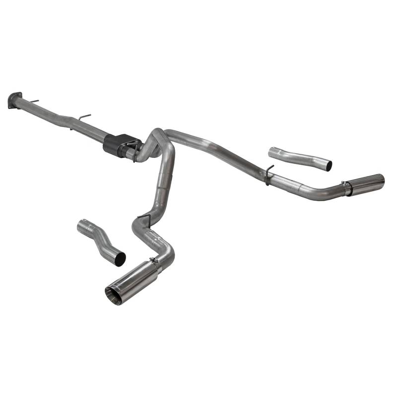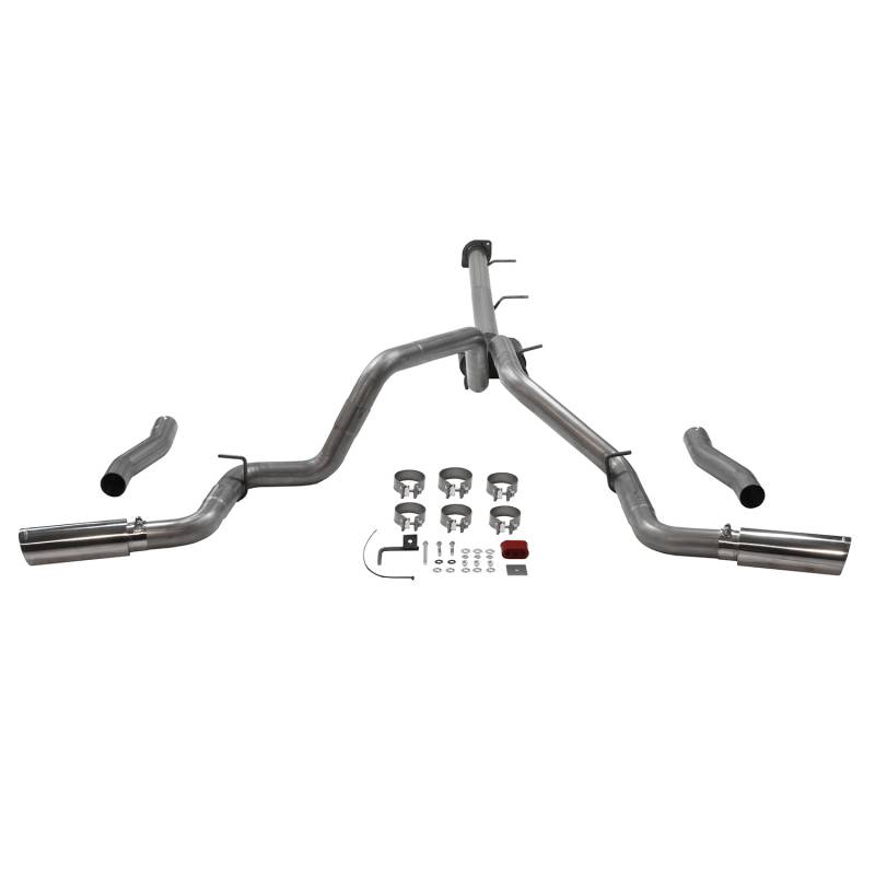 This Flowmaster® Outlaw® Cat-back exhaust system for the 2020-2026 Chevy Silverado and GMC Sierra 2500HD/3500HD trucks with the 6.6L gas engine, is perfect if you are looking for an aggressive sound level inside and outside of the truck, with all of the performance benefits that you would expect from Flowmaster®. Maximum increases of up to 9 hp and 9 lb.ft. over the stock exhaust at the rear wheels. Designed for the Crew Cab, Standard Bed (6.5 ft.) models only, this bolt-on, emissions-legal system features a stainless steel Outlaw series muffler and large dual 3.00-inch 409 stainless steel mandrel-bent tailpipes that can be configured to exit either dual straight out the back, or dual out the sides behind the rear wheels which is best suited for towing applications. The system is finished off with polished 4.00-inch stainless steel tips and is covered by our Lifetime Limited Warranty. Designed for an easy fit, this system includes all necessary parts and hardware for installation.