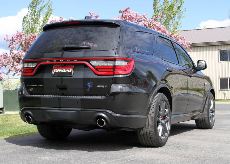 Flowmaster introduces our American Thunder stainless steel cat-back exhaust system for the 2018-2024 Dodge Durango with the 6.4-liter engine. This system uses Super 44 series mufflers for an aggressive to moderate sound level and increased performance. Mandrel bent 3.00-inch 409 stainless steel tubing allows for maximum exhaust flow and durability. The system uses larger 4.00-inch polished stainless steel tips for a custom look. This system also has tuned resonators to control interior sound and maintain driving comfort. Max dyno gains of 12 hp and 20 lb-ft at the rear wheels over stock. All of the necessary hardware is included, and factory-mounting locations are used for an easy installation. Backed by Flowmaster's Lifetime Limited Warranty.