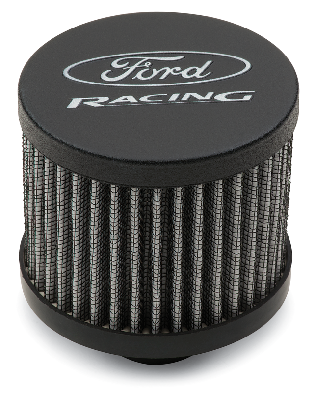 Ford Racing Breather-Black Crinkle Finish-Unshielded Dress up your engine compartment with this push-in breather with the Ford Racing logo. Push-In Breather Ford Racing Logo Black Crinkle Finish 3 in. Diameter Fits 1.25 in. Hole