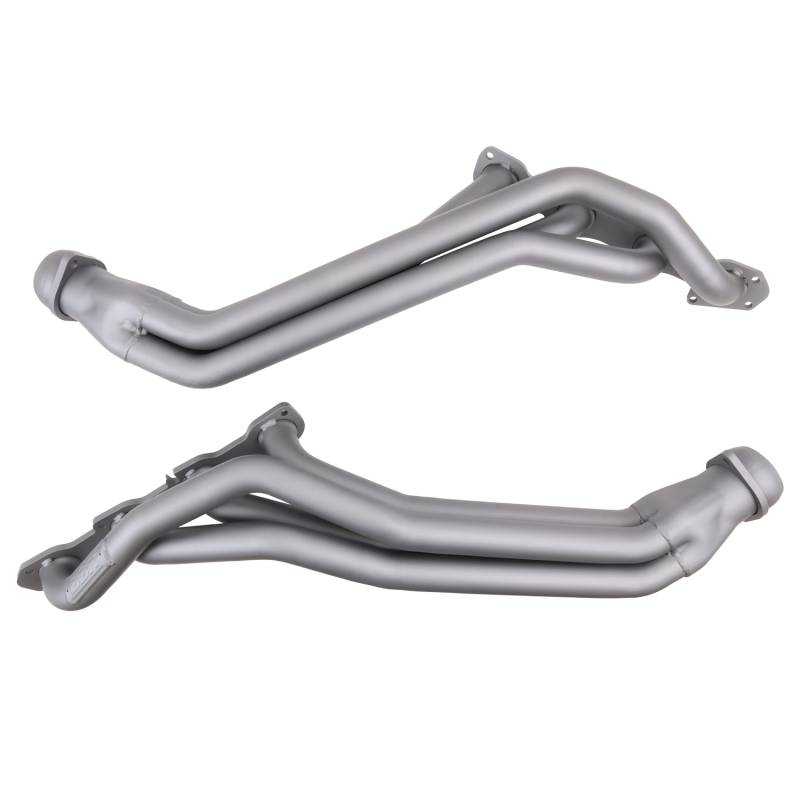 2009-24 DODGE CHALL CHARGER 5.7 1-3/4" LONG TUBE HEADERS (TITANIUM CERAMIC) These BBK Performance 1-3/4 full length long tube exhaust headers offer unsurpassed quality and fitment using top quality materials and American craftsmanship. Every long tube exhaust header system is hand built with CNC mandrel bent primary tubing for unrestrictive exhaust flow and maximum performance, 3/8" laser cut header flanges, patented scavenging collector design and gasket less ball and socket connectors for easy installation. Every exhaust header has been designed specifically for your application to get the most horsepower and torque out of the engine. BBK long tube exhaust headers outperform the competition in quality value and performance. All headers are a direct fit bolt on replacement when used with the correct matching mid-pipes which are available with high flow catalytic converters. Our decades of exhaust design and experience make BBK Performance your number one choice for late model American car and truck performance exhaust. Titanium Ceramic Finish - Kits Include New Gaskets And Hardware - CNC Mandrel Bent Primary Tubes For Maximum Flow and Performance