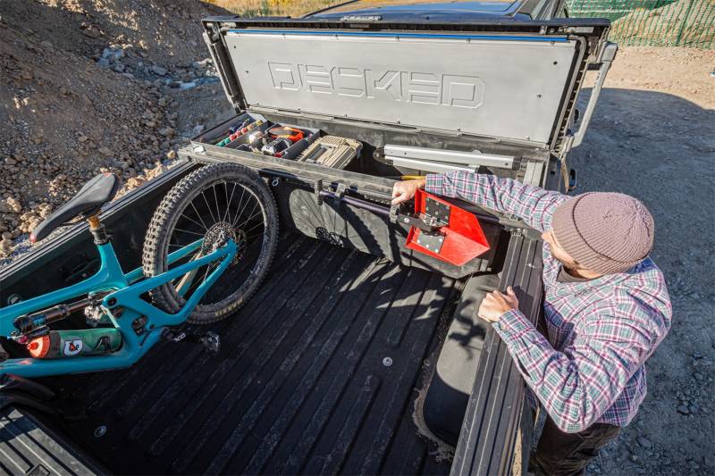 DECKED revolutionized Pickup Truck Bed Storage and Cargo Van Storage Systems with our low profile truck bed tool box system that is compatible with Ford F150, Ford F250, RAM 1500, RAM 2500, Chevrolet Silverado, GMC Sierra, Toyota Tundra and Nissan Titan pickup trucks along with Ford Transit, Ram ProMaster, Chevy Express GMC Savana, Mercedes Sprinter and Nissan NV Models. DECKED's ergonomic Toolbox slides out tools, gear, and other items in heavy duty drawers at waist height while still allowing the owner full use of their truck or van bed. DECKED Storage Systems are easy to install or remove, weatherproof, secure, ergonomic, and best of all, it's made in the USA. With its low-profile design the DECKED Storage System leaves plenty of room for further upfitting of your cargo van or pickup truck as needed. DECKED Truck and Cargo Van Storage Systems are perfect for small businesses like painters, carpenters, plumbers and handyman services who need their vehicle to have secure storage bins that are easy to access. DECKED Storage Systems were also designed with the outdoors enthusiast in mind, allowing you to carry team sports gear, fishing, hunting or any kind of sports gear you can imagine. Get organized with DECKED Storage Systems for your vehicle.