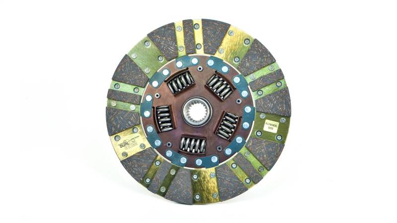 Dual Friction , Clutch Kit The Centerforce Dual Friction Clutch Series is a performance matched pressure plate & disc combination featuring the patented Centerforce centrifugal weight system (where applicable) and specialized machining processes to provide a performance clutch that offers exceptional street characteristics, while offering outstanding holding-capacity and durability. Furthermore, the Centerforce Dual Friction disc has an organic full facing on one side for longevity and an organic segmented facing on the other side providing increased holding capacity. Some applications have the organic segmented facings of both sides. The Dual Friction clutch is engineered for those who are looking for the ultimate in street/strip holding power and performance without sacrificing pedal effort and driver control. While the Dual Friction has been engineered primarily as a street clutch it can be used in mild competition applications. 10.4" Diameter Holds Up To 494 ft/lbs of Torque Weighs 21.95 lbs Sprung Hub Disc with Organic Material Dual Friction Design