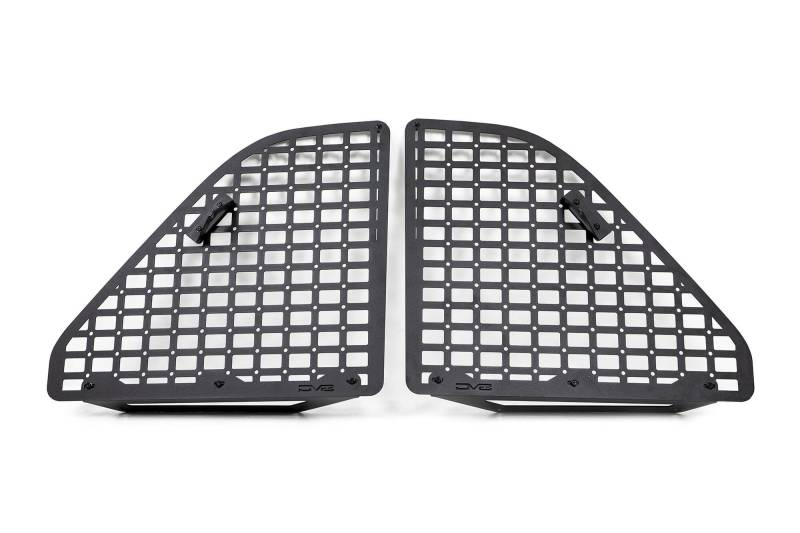 Molle Storage Panels The DV8 Jeep JL Molle Panels were designed to handle tough trails while keeping your gear securely stowed. They enable you to maximize your cargo space by providing additional storage options. The molle pattern gives you multiple options for attachment systems including straps, bolts, zip ties, & other solutions. The panels are perfect for mounting molle bags, first aid kits, knives, recovery gear, tools, and other accessories.