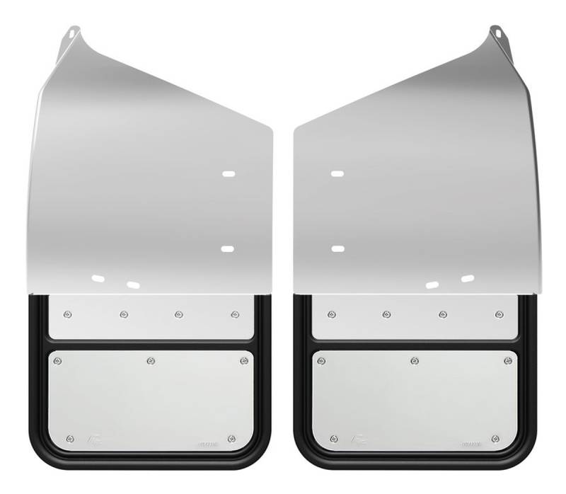 - Heavy duty 12"x11" or 14"x11" rubber mud flaps