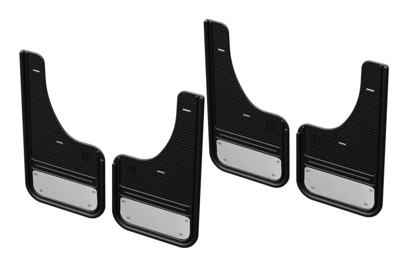 Gatorback Mud Flaps are the premier mud flap when it comes to vehicle protection. Gatorback Mud Flaps are made from heavy duty virgin rubber to give the mud flaps flexibility, durability and with the weight of the rubber, the flaps will not sail. Gatorback offers several mud flap options for most late model pickups, SUV's, and CUV's. Whether you have fender flares, a dually, oversized tires with a suspension lift, or need to have a set of removable flaps, Gatorback has your vehicle covered. Gatorback Mud Flaps are fitted with optional trim plates to add a touch of style, weight, and rigidity. These plates are offered in various finishes including polished stainless, black, or gunmetal. Gatorback also offers a variety of officially licensed manufacturer logos and branding, allowing you to show off your personalized style.