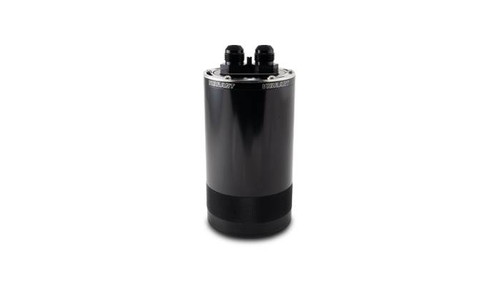 Catch Can Assembly, Medium (1.5L), 2-Port model Vibrant Performance is very excited to introduce our new third generation Catch Can program. This latest evolution of our popular program offers something for every conceivable vehicle, making it easy to assemble a truly custom and fully modular set up for any application. Whether your set up requires a small (0.75L), medium (1.5L) or large (2.0L) Catch Can, we've got you covered. If you need to go even larger, assemble a customized dual can assembly that can provide you with up to a 4.0L total capacity. Available with your choice of a 2-port or 4-port thread-on lid. Our 4-port configuration provides users the ability to recirculate the filtered air (closed-loop set-up). Our 2-port version features an integrated Stainless Steel vent, eliminating the need for an external breather filter for venting to the atmosphere. Our Gen3 Catch Can features -12 ORB female ports on the lid and a -8 ORB female port on the drain. The Catch Can is supplied with -12 ORB male to -12 AN male adapters and a -8 ORB male drain plug.