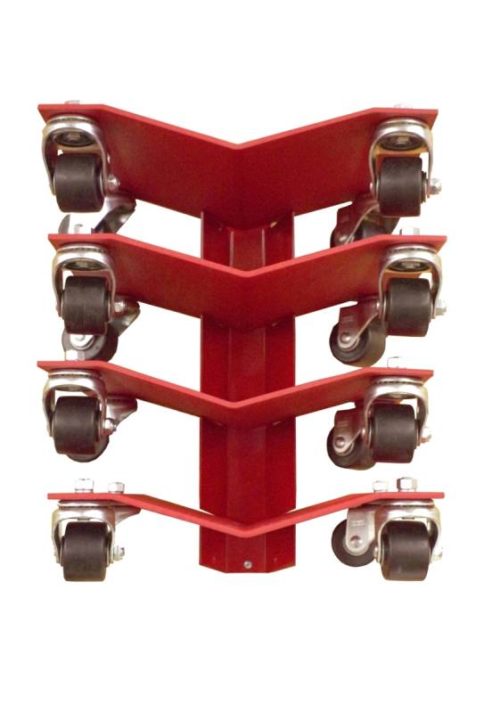 Merrick Machine has a new design for our best selling item besides the Auto Dolly. The Merrick Machine Dolly Dock now accommodates flat-top and grooved Auto Dollies while weighing only 4.5 lbs. A simple, yet ingenious, way to store your Auto Dolly sets when not in use. Works for any size Dolly. By storing your Dolly set on the wall you save shelf or floor space. Mounts via two lag screws to any wall stud.