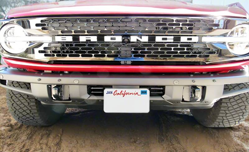 For 2021-2024 Ford Bronco with HD Modular Bumper without adaptive cruise control This bracket fits the 2021-2024 Ford Bronco with HD Modular Bumper without Adaptive Cruise Control. Constructed of 5052 and 6061 aluminum, welded and anodized black, this bracket is built to last. All parts required for installation included, however, tools are required. Requires no holes to be drilled for installation. Made in USA. You want to avoid drilling holes in your bumper? Want to avoid expensive fines and tickets for not having a front license plate? Easily remove your front plate with only the tug of a spring loaded pull pin, the remaining base plate is undetectable Capture all the action with our GoPro camera mount Save your bumper- no holes are required in the FRONT of your bumper