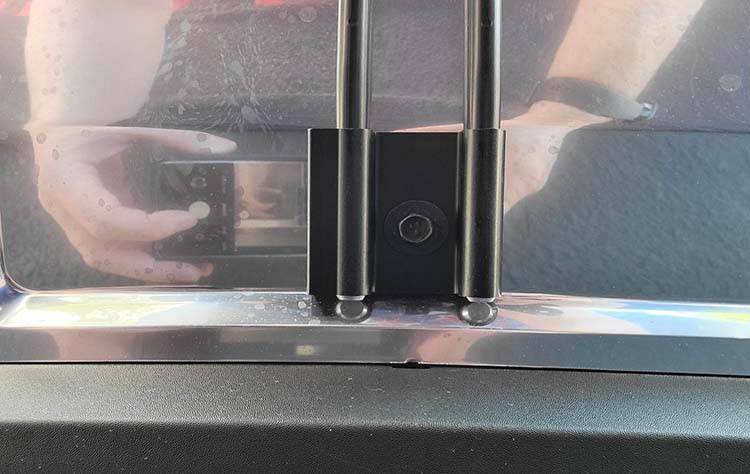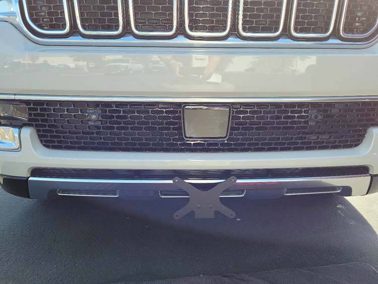 STO N SHO For 2022-2023 Jeep Wagoneer This bracket fits the 2022-2023 Jeep Wagoneer. Constructed of 5052 and 6061 aluminum, welded and anodized black, this bracket is built to last. All parts required for installation included, however, tools are required. Requires no holes to be drilled for installation. Made in USA. Made of lightweight aluminum 2-piece system consisting of a front plate and a base plate Removal of the front plate requires only the pull of a spring loaded pull pin Made to be used with our GoPro camera mount Remaining base plate is virtually undetectable when front plate is removed