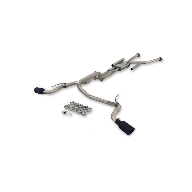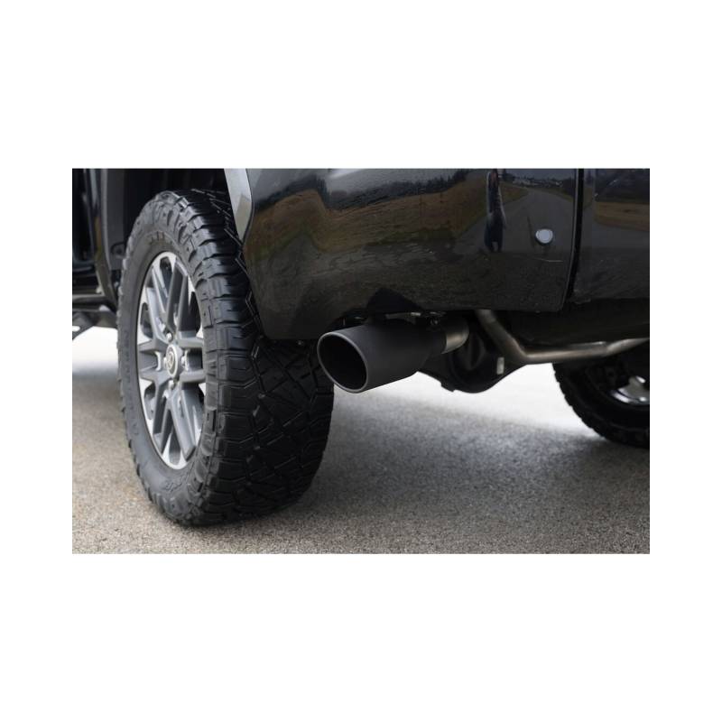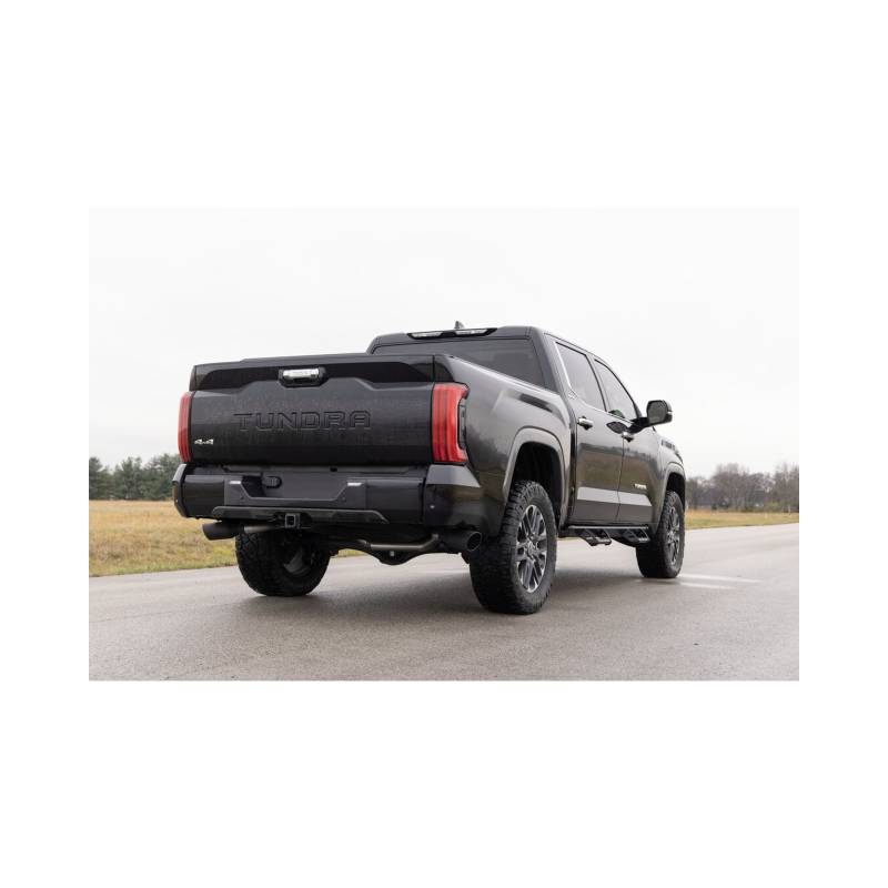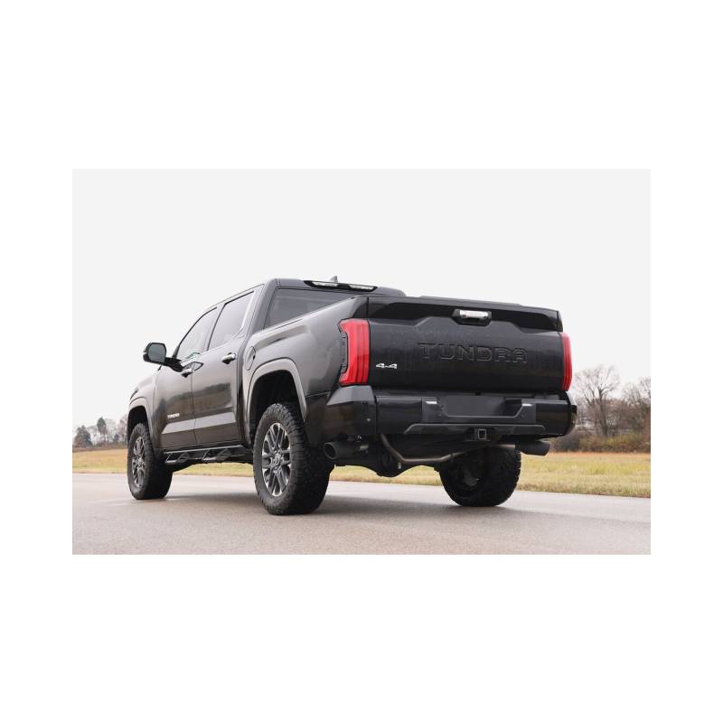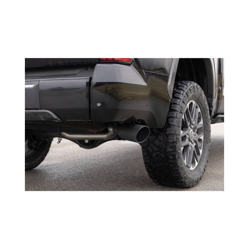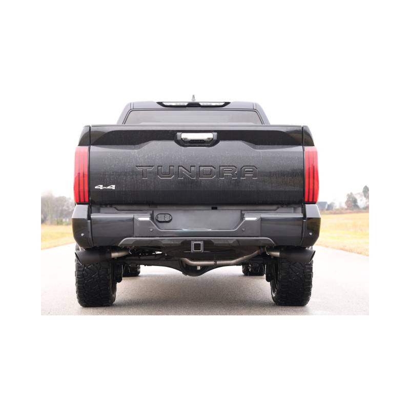 This Flowmaster® Flow FX® cat-back exhaust system for the 2022-2026 Toyota Tundra trucks with the 3.4-liter turbo engine is manufactured using durable 409 stainless steel throughout and features dual 2.50-inch mandrel bent pipes for better exhaust gas flow, and a Flow FX "straight-through" muffler is used for a moderate sound level and maximum performance. This system exits out both sides, behind the rear wheels with 4.50-inch black ceramic tips for added style and a custom look. The system uses all the existing factory hanger locations and includes installation instructions and all necessary hardware for an easy installation that you can do at home. Backed by Flowmaster's Lifetime Limited Warranty.