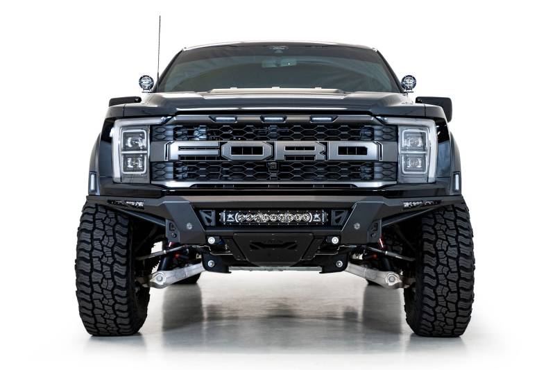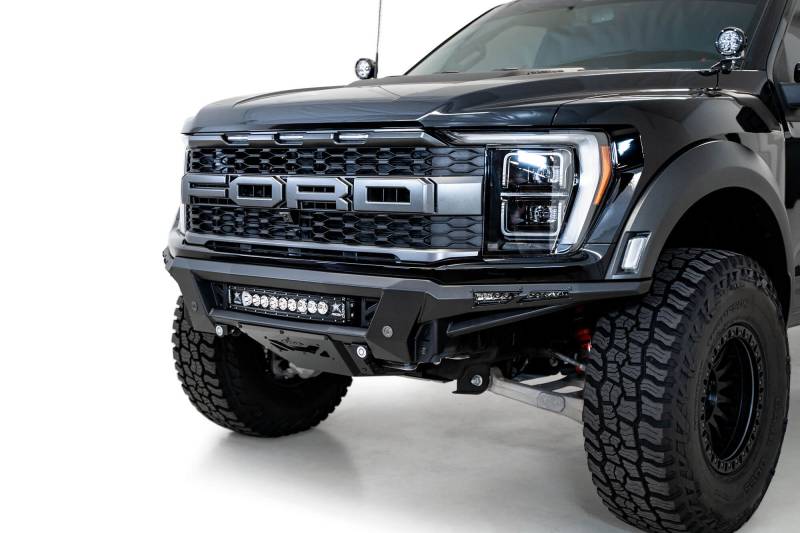 Phantom Front Bumper Introducing the new Phantom line of ADD bumpers. This low-profile 3rd gen Raptor front bumper features a prerunner inspired layout. The Phantom is constructed from plate steel for a more enhanced style, rather than the traditional tube steel. Its knife's edge design was intended to mimic the look of trailing arms. A lightweight 3/16-inch aluminum skid plate provides full protection without adding excess weight. The skid also features vented cutouts for proper intercooler air flow. The Phantom has several lighting options, including a central 20-inch radius light bar mount and 10-inch SR light mounts behind each side panel. The bumper features sensor mounts in order to retain full functionality of the parking sensors. An Adaptive Cruise Control relocation bracket is required for installation, however the intercooler does not need to be moved for proper fitment. As always, this is fully bolt-on and Made in America.