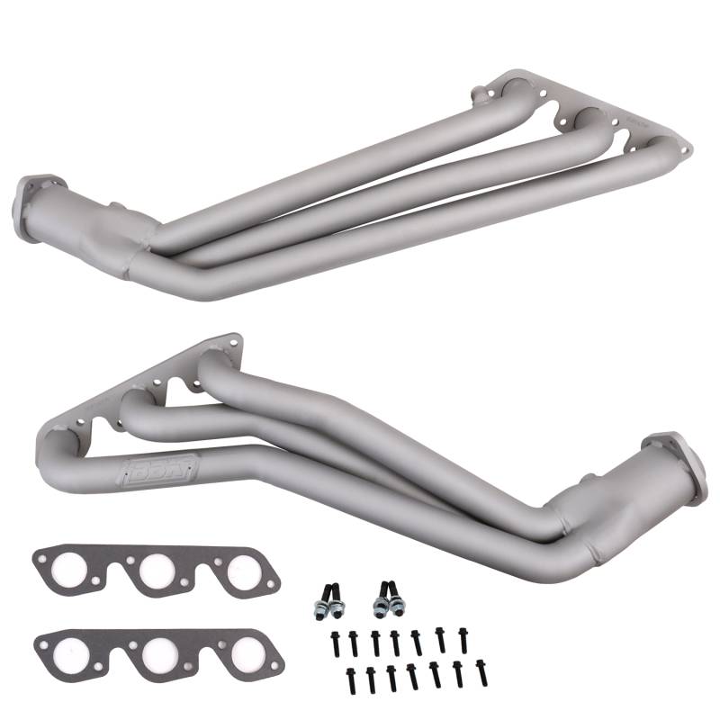 1999-2004 FORD MUSTANG V6 1-5/8" LONG TUBE HEADERS (POLISHED SILVER CERAMIC) Extract maximum performance from your 1999-2004 Ford Mustang V6 with these titanium ceramic BBK Performance full length headers. These direct bolt on BBK full length headers will increase your exhaust flow providing additional horsepower and torque. These full length headers will help give your Mustang a throaty exhaust note. The polished silver ceramic finish adds a nice touch of style to your engine bay.