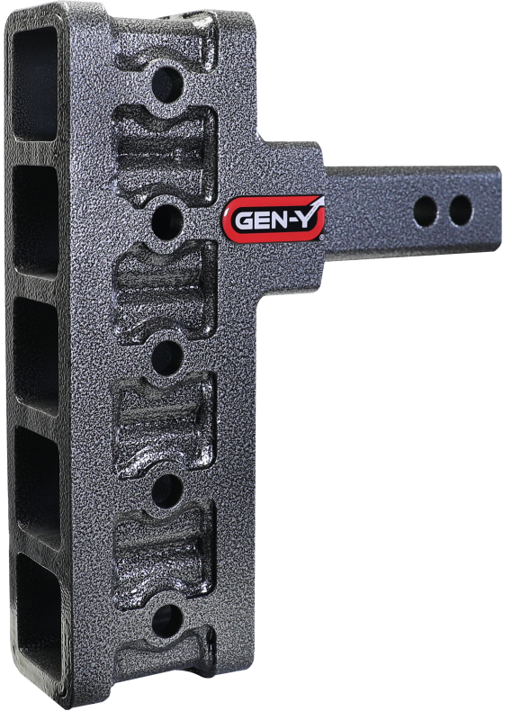 MEGA-DUTY Drop Hitch GEN-Y's Mega-Duty Adjustable Drop Hitches start at 10,000 LB towing capacity and go up to 32,000 LB towing capacity. There are multiple drop options as well depending on your trailer towing needs. Fully Adjustable Heavy Duty 2K Tongue Weight 16K Towing Capacity