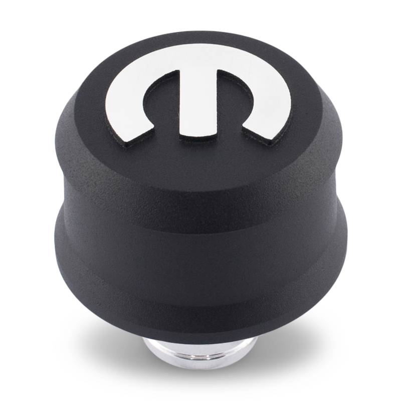 Black Crinkle Mopar Enthusiasts Rejoice! No more stamped steel breather caps for aluminum valve covers! Complete your engine dress-up look with a breather cap that improves your engine compartments look. These new Slant-Edge aluminum push-in breather caps are available in three different finishes, with raised and milled, or recessed with inlaid painted emblems. The vivid 3D Mopar omega emblem gives this 2.5 inch diameter breather cap a bold clean look that