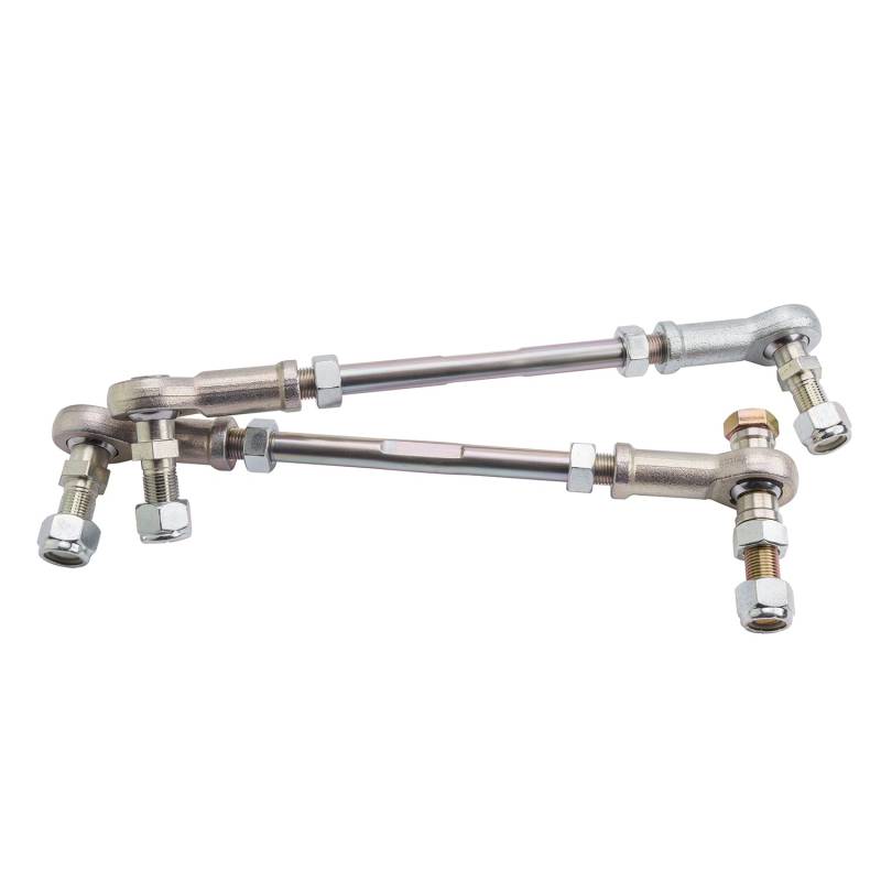 RSO Front Sway Bar End Links Zinc Plated Alloy Steel 0-4in Lift Upgrade your suspensions geometry with the RSO Suspension Sway Bar End Links. These links will prevent unwanted axle housing contact. Eliminate loss of motion with high quality factory style bushings and maintain sway bar balance for increased handling performance and comfort. The RSO Suspension sway bar end links are constructed using tension free rod ends and zinc plating that offer the best in corrosion resistance and smooth operation on or off road. Backed by a limited lifetime manufacturer warranty on the workmanship/structure, 5 years on the components, and 1 year on the finish/coating. Vehicle specific fitment to ensure that the part is right for your vehicle with variable length design adapt to your lift Accurately set your sway bar operating angle correcting geometry on lifted vehicles while improving performance on and offroad Tension-free rod ends reduce wear and strain, Special zinc plating applied for corrosion resistance and long lasting protection Maintain sway bar balance for predictable handling while factory style bushings eliminate loss of motion Limited lifetime manufacturer warranty on the workmanship/structure, 5 years on the components, and 1 year on the finish/coating