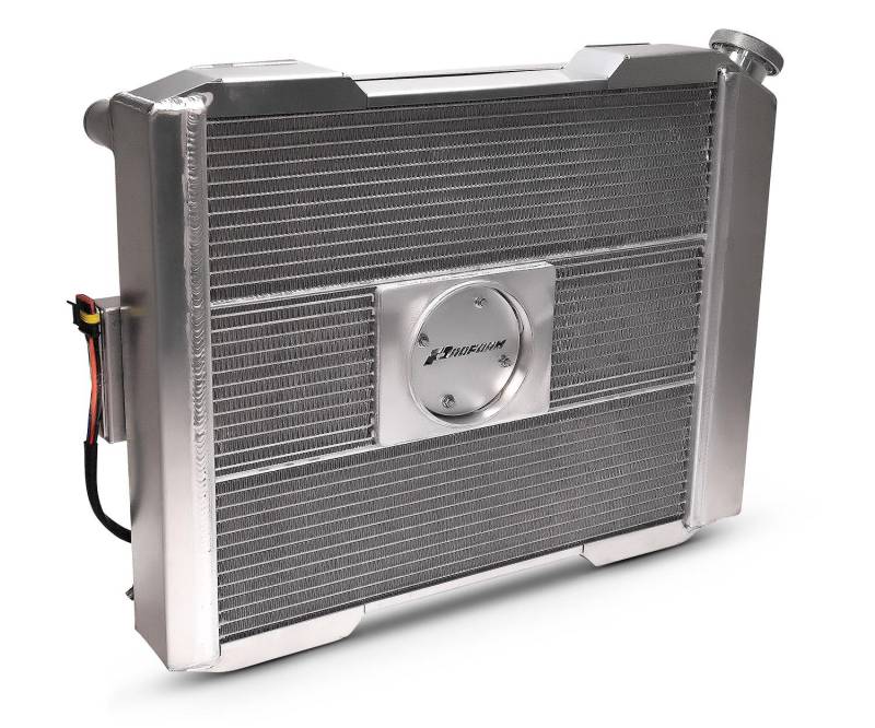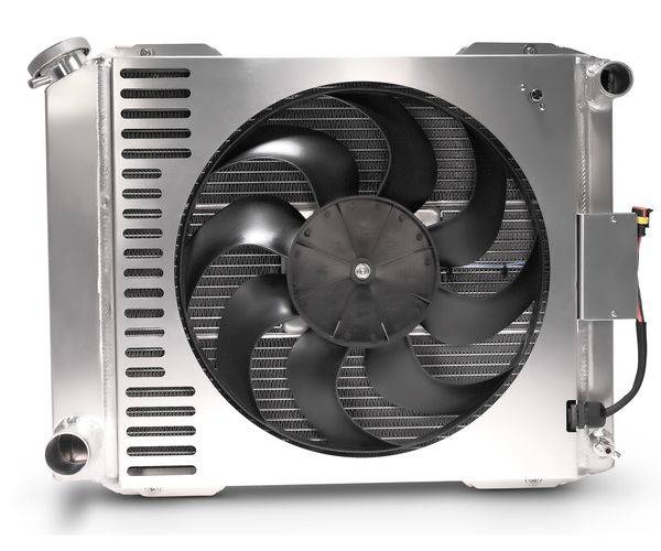 Slim-Fit Radiator System, Universal, Ford Style, 19-inch Core, Manual Trans The basic concept of automotive radiators hasn't changed in more than 100 years! And fans have been hung onto them in a mish-mash of ways for just as long. Since then, aside from materials and design improvements, NOTHING HAS CHANGED...UNTIL NOW! PROFORM is upending the radiator industry with the introduction of its new Slim-Fit Integrated Radiator System! No more cobbling together a core, a fan, and possibly a shroud, and gobbling up 8" of valuable front-to-back under-hood space, sometimes leading to clearance problems. BETTER DESIGN - UP TO 40% THINNER! AND SLEEK! PROFORM has completely rethought how the radiator, fan, thermostat, and shroud can come together seamlessly to create a unified radiator system that is under 4" thick (core/shroud), looks and works great, and is pre-assembled right out-of-the-box! This universal model is ready for customization, or might just happen to be the right size for easy installation into your vehicle. A hodge-podge of one hundred years of rigged-up cooling paraphernalia has come to an end. INNOVATION! What did we do? With revolutionary engineering we flipped the motor around so instead of hanging on the outside, it's integrated directly into a uniquely designed core made with state-of-the-art brazing technology (with no meaningful cooling compromise). Combined with a high-performance fan blade inserted into a smooth aluminum shroud, the result is the industry's narrowest, most streamlined look. Every PROFORM Slim-Fit Integrated Radiator includes a shroud, electric fan with adjustable thermostat, wiring harness, and radiator cap.