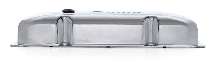 Here's a look that's new, and eye catching! The vintage MOPAR emblem has been stamped into these valve covers, then hand painted with a shade of blue matches engine blocks from the era. Oil restricting baffles are pre-installed. All valve covers are sold in pairs, and come equipped with air breather and PCV grommets, unless specified otherwise.