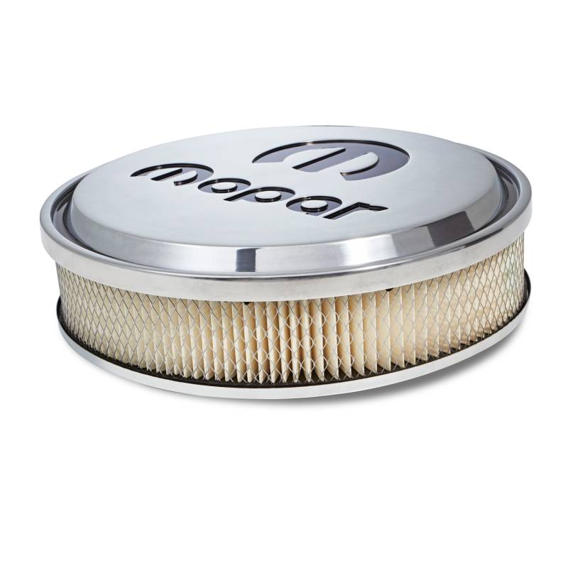 14" Air Cleaner Kit'slant-Edge Air Cleaners are the perfect way to complete your dress-up look in premium Slant-Edge style. If you've got polished or chrome valve covers, these will set your engine bay OFF like no other air cleaner. The over-sized MOPAR emblem with MOPAR black inlaid paint is next level. They are supplied with genuine 3" GM air filter elements (GM P/N 6421746, AC Delco P/N A212CW) for maximum airflow. Each kit is supplied with necessary mounting hardware. Technical Note: After installing a new air cleaner, always lower the hood slowly to confirm sufficient clearance visually. Minimum clearance of 3-3/4" is required from the top of the carburetor gasket area to the underside of the hood. The air cleaner base is recessed for a low profile appearance. Patented Design.