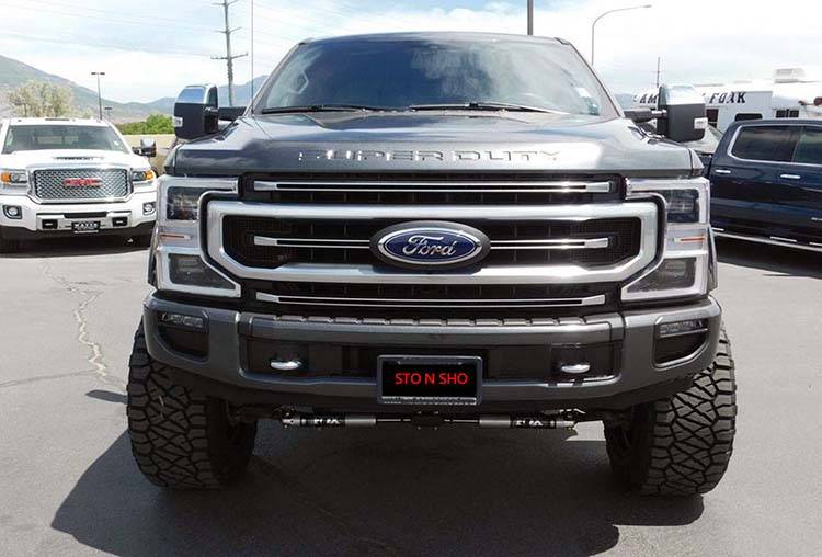 For 2021 Ford F-350 Tremor This bracket fits the 2021 Ford F-350 Tremor. You want to avoid drilling holes in your bumper? Want to avoid expensive fines and tickets for not having a front license plate? Easily remove your front plate with only the tug of a spring loaded pull pin, the remaining base plate is undetectable Capture all the action with our GoPro compatible camera mount Save your bumper- no holes are required in the FRONT of your bumper