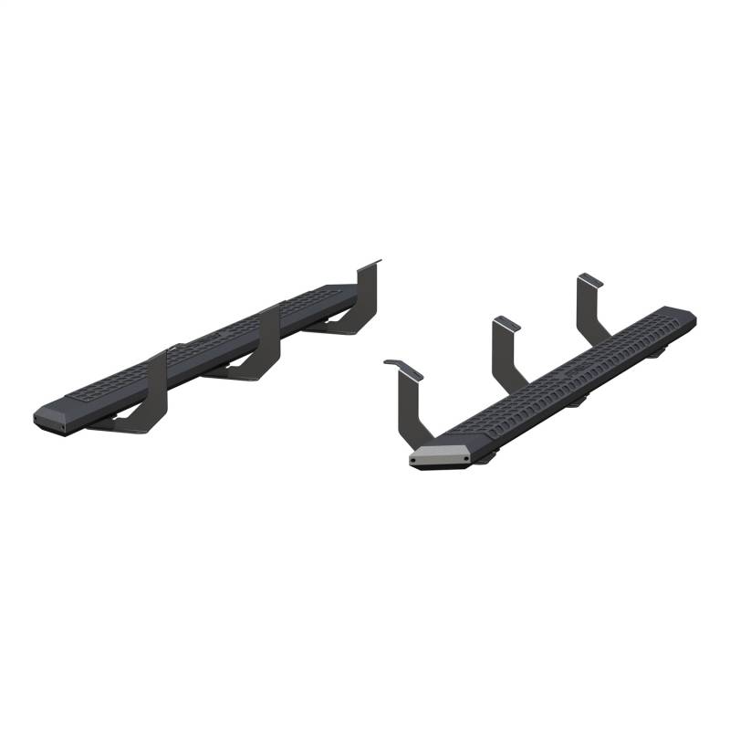 AdvantEDGE 5-1/2" x 85" Black Aluminum Side Bars, Select Toyota Tundra Crew Cab ARIES AdvantEDGE side bars do away with the common, rounded look of other side bars, nerf bars and running boards, featuring an angular, eight-sided tube profile and powder-coated all-aluminum construction. The angular edges provide a clear-cut, uncompromising accent for the look of today's trucks. Made from 5-1/2" wide, eight-sided, extruded aluminum tubing, AdvantEDGE running boards are strong, lightweight and impervious to rust, offering a solid step that is built to face the elements and outlast them. They also come with die-cast aluminum end caps and a stamped aluminum tread. The aluminum treads provide a long-lasting, non-skid stepping surface that will not crack or fade in the sun. ARIES AdvantEDGE side bars are also marked for their easy, custom-fit installation. They feature the ARIES VersaTrac mounting system with brackets that are made from powder-coated steel and built for specific vehicles. This particular set of custom running boards fits specific years of the Toyota Tundra crew cab (see application info to verify compatibility). The high-strength steel brackets mount using pre-existing holes, and the aluminum running boards attach to the brackets with heavy-duty hardware. The VersaTrac mounting system makes installation simple and customizable, allowing the side bars to be swapped out at any time with other side steps or running boards that use the VersaTrac system. Setting yourself apart is simple with the ARIES AdvantEDGE series. In addition to these truck side steps, we also offer the AdvantEDGE bull bar and AdvantEDGE headache rack, featuring the same all-aluminum construction and eight-sided tube profile. For a fully customized look to match your pickup, AdvantEDGE side bars are available in two finish options, including carbide black powder coat and chrome powder coat. Unique, eight-sided tube profile to complement the style of modern trucks Extruded, all-aluminum construction to be strong, lightweight and rust-free Stamped aluminum treads for a non-skid step that will never crack or fade Die-cast aluminum end caps for a durable accent Tough carbide black powder coat finish with textured black powder-coat step pads