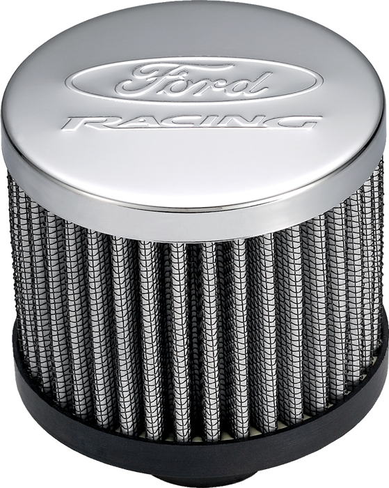 Push In Valve Cover Breather With Filter And Ford Racing Logo Dress up your engine compartment with this push-in breather with the Ford Racing logo. Push-In Breather Ford Racing Logo Chrome Finish 3 in. Diameter