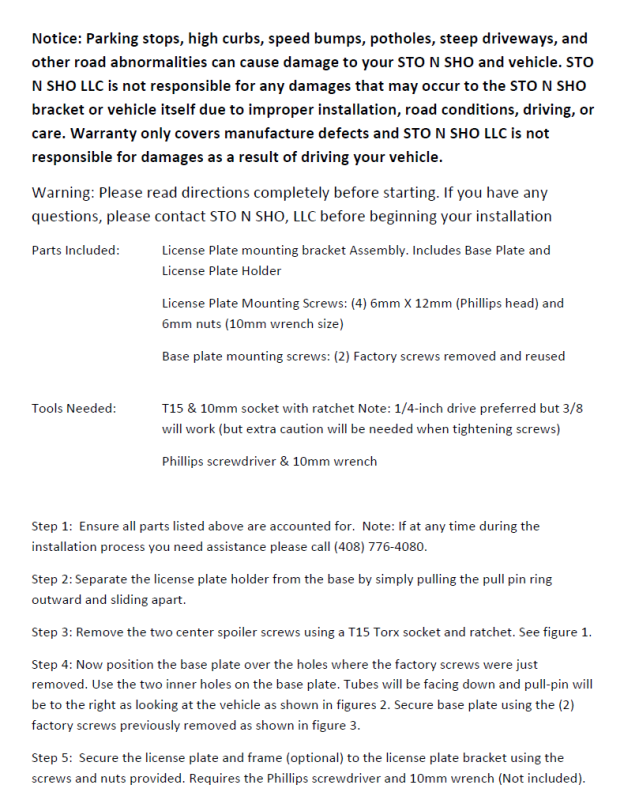 STO N SHO SNS361 Quick Release License Plate Bracket 22-25 Cadillac CT4