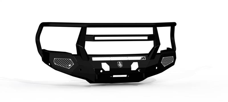 The next Evolution in Winch bumpers is here, with Road Armor's Evolution Series. Style is king and quality is the standard utilizing the Evolution Series your truck will stand out. with a bold new stature. Available in pre-runner with or without reaper bar, and in full guard. Your trail on night runs is illuminated by integrated light mounts for a single-row 30 in. light bar, and end pods that sport options for either a single 4 in. light bar or dual 3 in. cubes, all secured by our laser-cut Hyve mesh and accented with integrated 8 in. LEDs. Never ones to forego safety and function over style, the Evolution Series supports factory sensors, is built with high-strength American steel, and are made road-ready with our 9-stage powder coating process.