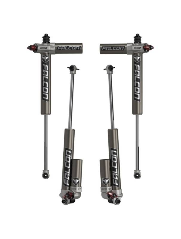 Teraflex Falcon Series 3.3 Fast Adjust Piggyback Shocks offer a wide range of adjustability with their easy to use 3-position Fast Adjust Knob. Settings include Soft, Custom, and Firm. The Custom setting incorporates an 8-Position Dial for more precise tuning.