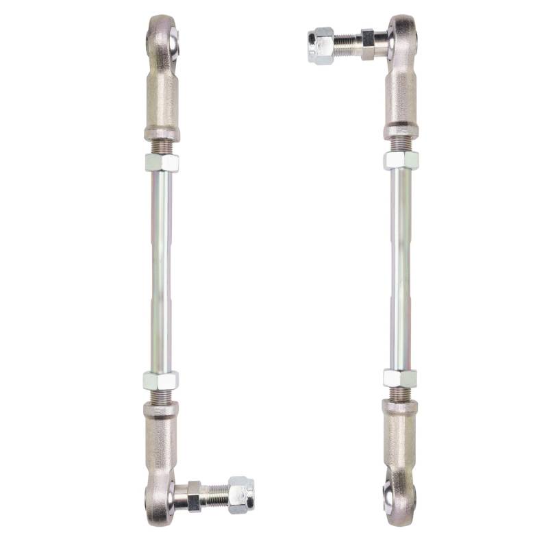 RSO Rear Sway Bar End Links Zinc Plated Alloy Steel 0-4in Lift Upgrade your suspensions geometry with the RSO Suspension Sway Bar End Links. These links will prevent unwanted axle housing contact. Eliminate loss of motion with high quality factory style bushings and maintain sway bar balance for increased handling performance and comfort. The RSO Suspension sway bar end links are constructed using tension free rod ends and zinc plating that offer the best in corrosion resistance and smooth operation on or off road. Backed by a limited lifetime manufacturer warranty on the workmanship/structure, 5 years on the components, and 1 year on the finish/coating. Vehicle specific fitment to ensure that the part is right for your vehicle with variable length design adapt to your lift Accurately set your sway bar operating angle correcting geometry on lifted vehicles while improving performance on and offroad Tension-free rod ends reduce wear and strain, Special zinc plating applied for corrosion resistance and long lasting protection Maintain sway bar balance for predictable handling while factory style bushings eliminate loss of motion Limited lifetime manufacturer warranty on the workmanship/structure, 5 years on the components, and 1 year on the finish/coating
