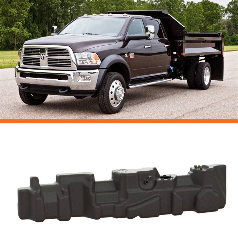 XXL Replacement Mid-Ship Fuel Tank 50 Gallon Get ready to take your Ram/Dodge Cab & Chassis to the next level with the arrival of Titan's latest innovation: the XXL 40-gallon midship replacement tank. Whether you're tackling construction projects, delivering goods, or exploring new horizons, this tank ensures you have the fuel capacity you need to get the job done efficiently and effectively. Crafted from our renowned military-grade, cross-linked polymer material, this tank sets a new standard for durability and reliability. With a thickness of at least 1/4", it's built to outlast all competitors, standing strong against the toughest conditions. Tougher than steel and more durable than aluminum, this tank is engineered to exceed expectations. Rest assured, our new design has undergone rigorous testing to ensure unparalleled quality and performance. Backed by our legendary Lifetime Warranty, you can trust that our products are built to last, giving you the peace of mind to tackle any task with confidence. Don't settle for subpar and outdated metal fuel tanks. Elevate your Ram/Dodge Cab & Chassis vehicle with Titan's superior midship replacement tank and experience the difference for yourself. Application. For model years 2007-2026.For Ram/Dodge Cab & Chassis Trucks 84" & 108" CA trucks.0301130000 adaption bracket is required when installing on 192.5" wheelbase/108" CA truck. Additional Details. Optional kit (9900057) will allow the tank to be used as an auxiliary tank to feed a stock rear, after axle tank. Optional filler neck assembly is also available. (P/N 9900025). Our mid-ship, replacement fuel tanks utilize the truck's stock/OE sending unit. An aftermarket or upgraded sending unit is not needed or required in any way. In rare cases, some aftermarket/upfit C&C products may cause interference with the Titan Tank. It is best practice to ensure other aftermarket/upfit items will not interfere with the Titan Tank before purchasing. Super Durable Military Grade Polymer, Cross-Linked Polyethylene (XLHDPE) Nearly 200 Times Less Heat & Cold conductive than Metal Tanks No Condensation, No Corrosion, and Easy to Install Compatible With Most Bio-Diesel Fuel Exclusive TITAN Sending Unit Mounting System