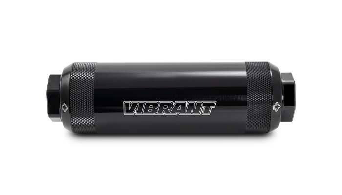 HD PowerFilter, 100 Micron Filter, -12 ORB Vibrant Performance HD PowerFilters are a cutting-edge fuel filtration unit designed for high-performance vehicles. They feature a directional filter designed for coarse or fine filtration, with options of either a 304 stainless-steel pre-pump filter or two different microglass filters. With a durable 6061 aluminum body and black anodized finished, these fuel filters are not only sleek but have wear and corrosion resistance. Our HD PowerFilters ensure that only clean fuel reaches the engine, enhancing both performance and efficiency. They are compatible with various fuels and the easy maintenance design makes it a versatile and practical solution for any gasoline-powered vehicle looking to enhance engine life.