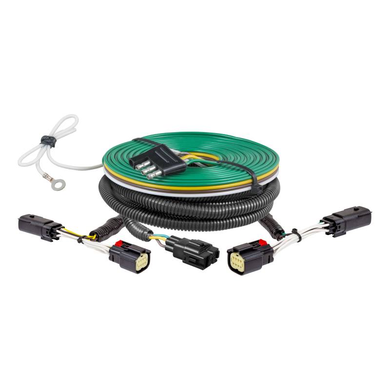 Towing your vehicle behind your RV is a great way to experience more of the adventure on your cross-country excursions. Whether youre towing a compact car or a full-size truck, CURT has the perfect solution to help you Bring It! CURT towed-vehicle RV harnesses are a vehicle-specific, plug-and-play solution to wiring your vehicle for dinghy towing. They use original-equipment-compatible connectors to plug into your vehicles wiring system without any cutting, splicing or soldering required. They provide a standard 4-way flat connector to plug into the RV socket and synchronize the vehicles tail lights, turn signals and brake lights with the RVs. Because each towed-vehicle RV harness has a vehicle-specific design, installation is fast and easy. This particular RV dinghy towing wiring harness is designed for specific years of the Chevrolet Trax. CURT RV harnesses are also built to provide long-lasting operation. They feature integrated block diodes that protect the vehicles circuits from the RV signals. They isolate the sensitive vehicle electronics, keeping them from overheating and short circuiting. Every CURT towed-vehicle RV harness comes ready to install with all necessary hardware included. They also come with a 4-way flat extension to provide plenty of length to plug into the RV socket, as well as a connector mounting bracket to mount the connector on the vehicle.