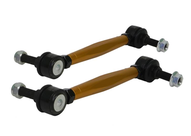 Not many enthusiasts are aware that OE and more importantly aftermarket sway bar effectiveness can be hindered by worn or inadequate mounts, drop links and lateral stoppers. Whiteline adjustable sway bar links are engineered to be up to the task with top spec, light weight componentry combined with a window of adjustability, eliminating sway bar preload on installation but most importantly ensuring the maximum output of the sway bar for improved grip and better handling.