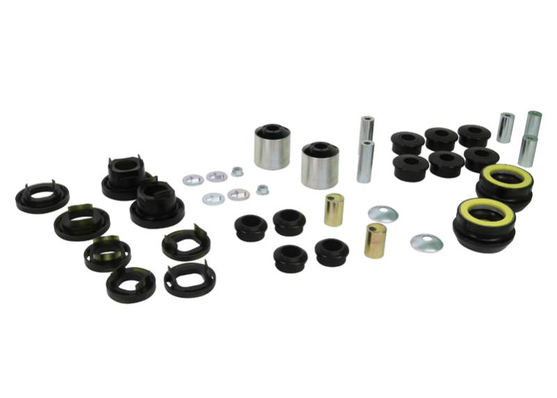 By matching key bushing, alignment and geometry products into one solution, Whiteline Essential Kits provide bang for your buck handling upgrades that simply Activate More Grip. Essentials include upgraded chassis control bushings for the front control arm, popular strut mount kit, steering precision rack bushings with rear positive traction differential and subframe insert bushings that deliver go kart like steering and next level traction to your vehicle.