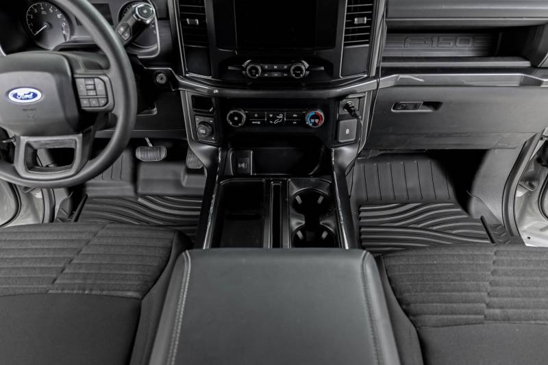 Introducing Flex-Fit floor mats ΓÇö the ultimate enhancement for your truck's interior and built tough to handle any challenge. Crafted from premium rubber-like material, these mats are as durable as they come, perfectly tailored to fit your truck's unique shape for a seamless finish.\ Stock floor mats just don't cut it for adventurers. They get trashed by mud, don't hold up to spills, and leave your carpets a mess. Give your ride the all-weather protection it deserves with Rough Country's Flex-Fit Floor Mats, the perfect solution for keeping your vehicle clean and protected.\ All-Weather Protection: Engineered to fit your vehicle perfectly, these mats provide top-notch defense against snow, mud, sand, saltwater, and more.\ Spill Saver Lip: Don't sweat the spills! Our mats feature a Spill Saver Lip that prevents liquids from reaching your carpet, so you can enjoy your coffee on the go without worry.\ Non-Slip, Textured Surface: Stay in control no matter the terrain with our mats' non-slip, textured surface, designed to keep your feet firmly planted while driving.\ Easy to Clean and Maintain: Cleaning up is a breeze! These mats are detachable and easy to clean, so you can spend less time on maintenance and more time hitting the road.\ Premium Materials: Constructed from a rubber-like TPE material, these mats are built to withstand extreme temperatures without cracking or warping. They will stay flexible and functional for the long haul.\ Effortless Installation: Forget wrestling with bulky mats. Flex-Fit Mats slide right into place for a quick and frustration-free installation.\ Upgrade your truck's defense against the elements with Rough Country's Flex-Fit Floor Mats. They'll keep your carpets looking fresh and give you peace of mind on every adventure.