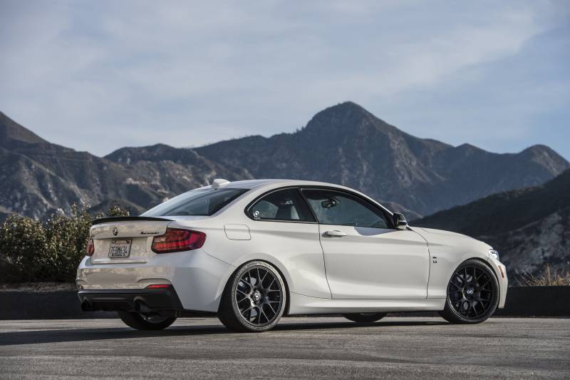Dinan engineers designed the F22 BMW M235i exhaust to improve exhaust flow by reducing back pressure, resulting in increased power output and a great sporty sound that is civilized when you want it to be, and pleasantly aggressive under hard acceleration. Dinan also incorporates a Helmholtz chamber design that reduces resonance or"drone" at low RPM.\nThe system is built to exacting specifications to ensure the perfect fit using the factory hangers. It is made from 100% 16 gauge 304 stainless steel and will resist corrosion for years to come. The design features twin 89mm polished, or ceramic black, exhaust tips for a tasteful, high-performance look.