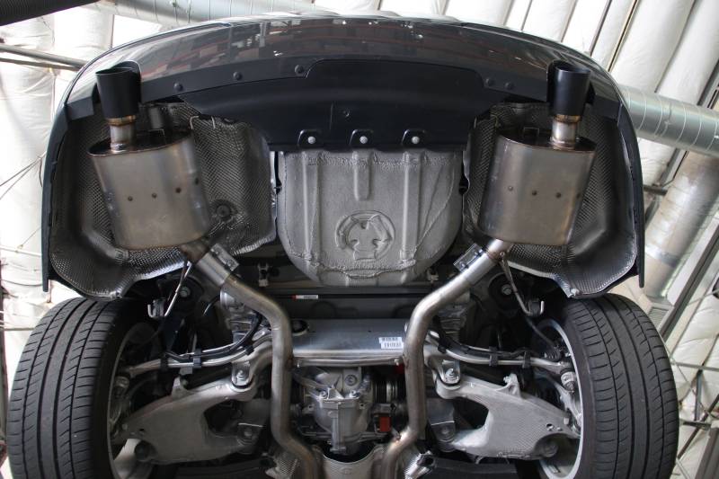 Dinan engineers designed the F10 BMW 535i exhaust to improve exhaust flow by reducing back pressure, resulting in increased power output and a great sporty sound that is civilized when you want it to be, and pleasantly aggressive under hard acceleration. Dinan also incorporates a Helmholtz chamber design that reduces resonance or"drone" at low RPM.\nThe system is built to exacting specifications to ensure the perfect fit using the factory hangers. It is made from 100% 16 gauge 304 stainless steel and will resist corrosion for years to come. The design features twin 89mm polished, or ceramic black, exhaust tips for a tasteful, high-performance look.\nThe factory computer-controlled exhaust valve is eliminated.