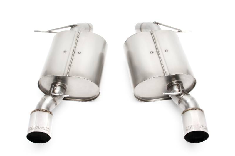 Dinan's free flow Axle-Back exhaust for the 335i Coupe and Convertible improves exhaust flow by reducing back pressure, resulting in increased power output and a great sporty sound that is civilized when you want it to be and pleasantly aggressive under harder acceleration. 100% stainless steel construction and exacting specifications ensure that the system fits correctly using the factory hangers and will resist corrosion for years to come. The design reduces overall weight as well and features 3.5'' polished stainless, or ceramic black, tips for a tasteful high-performance look.