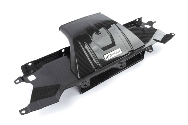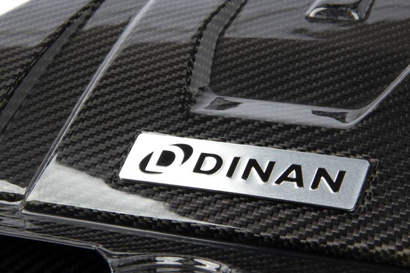 Being the quintessential performance SUV in the marketplace, the X5M is the perfect canvas to showcase a work of art for the entire enthusiast community to see. Creating an indelible mark upon the vehicle, and in particular the engine bay, the Dinan carbon fiber cold air intake is not just a work of art but a piece worthy of bearing the label of "masterpiece."\nWith gloss UV coated carbon fiber stretching from the front of the engine compartment to the rear it's hard not to be impressed by the sheer volume of carbon. The majority of it comprised of a fully functional secondary air inlet which doubles as an ornate engine cover. As such, signature BMW engine cover design elements signifying the cylinder count are integrated into the design for factory like continuity and a nod to a long history. The cosmetic beauty of the system does not solely derive from the presence of carbon however. The immense central passage also purposefully bisects the engine compartment to ensure the factory bracing, which is impressive on its own, is visible. With both OEM and Dinan elements showcased simultaneously the overall engine bay retains symmetrical harmony and commands attention at all corners.\nBeyond outward appearances and upon closer inspection details emerge which showcase the level of care taken in the intake systems design beyond simply aesthetics. For instance, the secondary air source is deriving its contents from an unobtrusive central hood scoop located behind the front grilles that feeds into the newly formed inlet hump at the front of the engine bay. Through constant CFD analysis, the design of the scoop and secondary inlet continually underwent improvements in order to meet the demand of an even and un-agitated air supply to each air box. In its final form, accents in the carbon both provided a visual embellishment as well as created the outward manifestations of the runners used to direct and smooth the secondary air flow. The additional air flow ultimately supplements the factory inlet locations on both the left and right air boxes with ambient air from outside of the engine compartment. These air boxes have been enlarged and equipped with massive filters to handle this increased volume and together with the rest of the system allow the intake to flow as efficiently as possible.\nWhile the stock intake system is adequately suited to support up to stage 1 power levels that does not mean there is no performance benefit when upgrading to the Dinan system. Besides its jaw dropping appearance the biggest advantage of the system, by virtue of additional and optimized flow, is the reduction of the pressure depression in the stock system. This equates to the turbo having to work less in order to achieve targeted power. With the turbo working more efficiently this also means a lower pre-turbine backpressure, lower turbocharger shaft speeds, lower turbocharger compressor discharge temperatures, and for the ability to achieve higher boost pressure levels. Paired with the natural improvement to throttle response, a bump to the acoustics, and an unequalled visual appeal the Dinan F9x X5M/X6M carbon fiber intake system can wear the self-appointed moniker of "masterpiece" without trepidation.