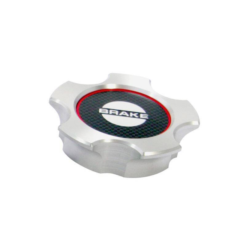 1|Available from Drake Muscle Cars, this 2005-14 Mustang Brake Master Cylinder Cap is machined from billet aluminum, and has a clear anodized finish. The cap features a stylish stamped aluminum insert with carbon fiber black pattern and raised letters.