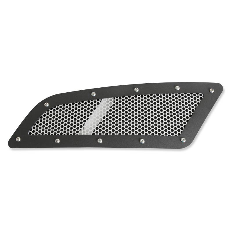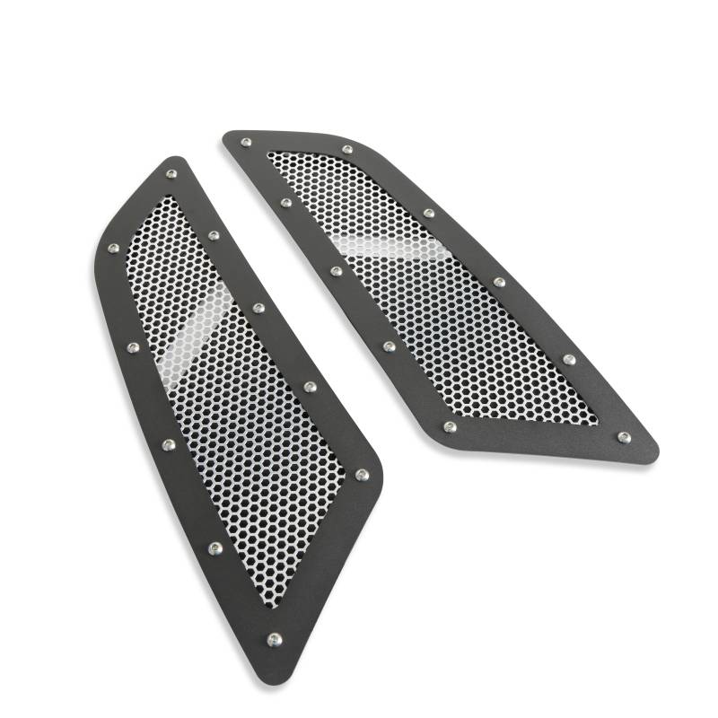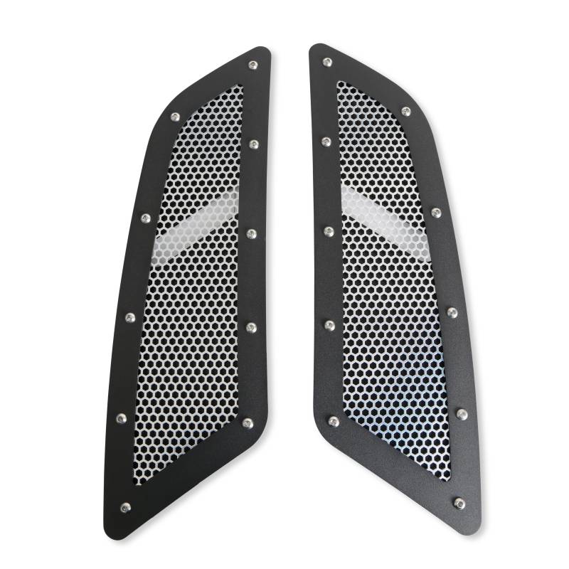 Give any 2015+ Mustang GT S550 an attitude adjustment with a set of Speed Mesh Hood Vents by Drake Muscle Cars. These aggressively styled hood vents feature matte black laser-cut frames, honeycomb pattern mesh grilles and stainless steel hardware for a hardcore look. Each kit includes integrated backing plates that can be removed for increased air flow. These hood vents install in the factory location with no drilling or cutting required.