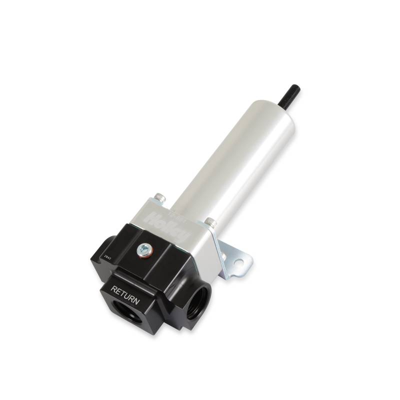 The Holley VR Series billet fuel pressure regulators are part of the VR1 and VR2 Series brushless fuel pump systems product line. These regulators can support 3000+ horsepower engines that require high volumes of fuel flow. Both EFI and carbureted versions can be referenced on a 1:1 ratio. They are precision machined from 6061-T6 billet aluminum for strength and durability and feature a black bright dip anodized body and a clear bright dip anodized top for corrosion resistance and good looks. Offered in 2 port and 4 port versions for carbureted or EFI pressures, Holley has the regulator to cover your needs!