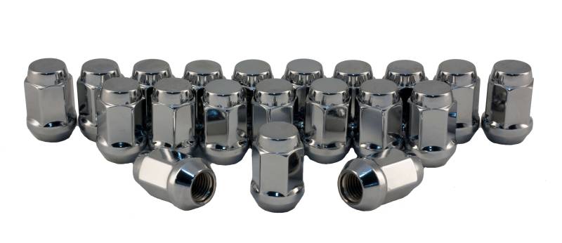 Heat treated acorn 3/4" Bulge Style Lug Nuts. Made from quality carbon steel and each piece meets or exceeds industry standards. Each one has a beautiful chrome finish unmatched in the wheel industry.