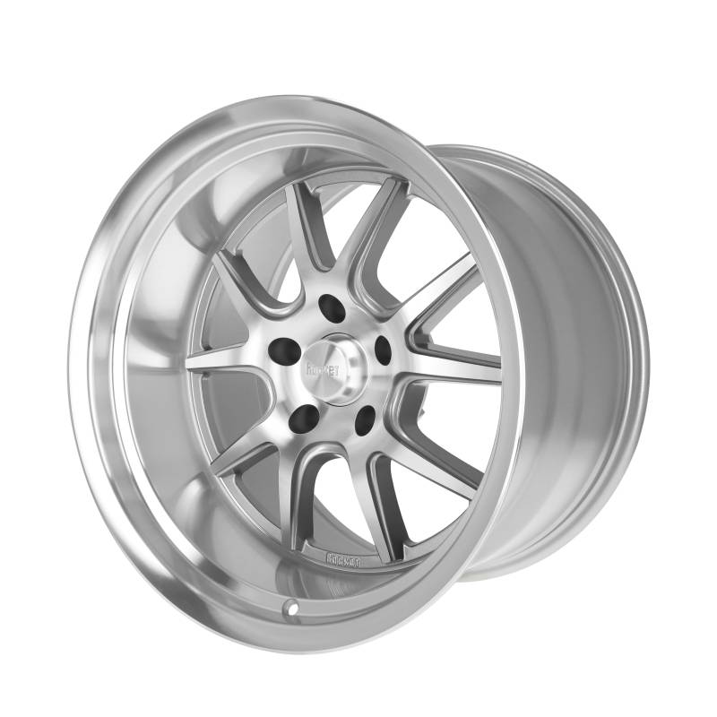 Features machined face and rim with titanium color accents and premium clear coating for low maintenance and show quality appearance. 1-piece design eliminates unwanted leaky bolts and maintenance of 3-piece wheels. Generous caliper clearance for performance braking systems. Includes 1.00 inch tall machined dome center cap with Rocket logo.